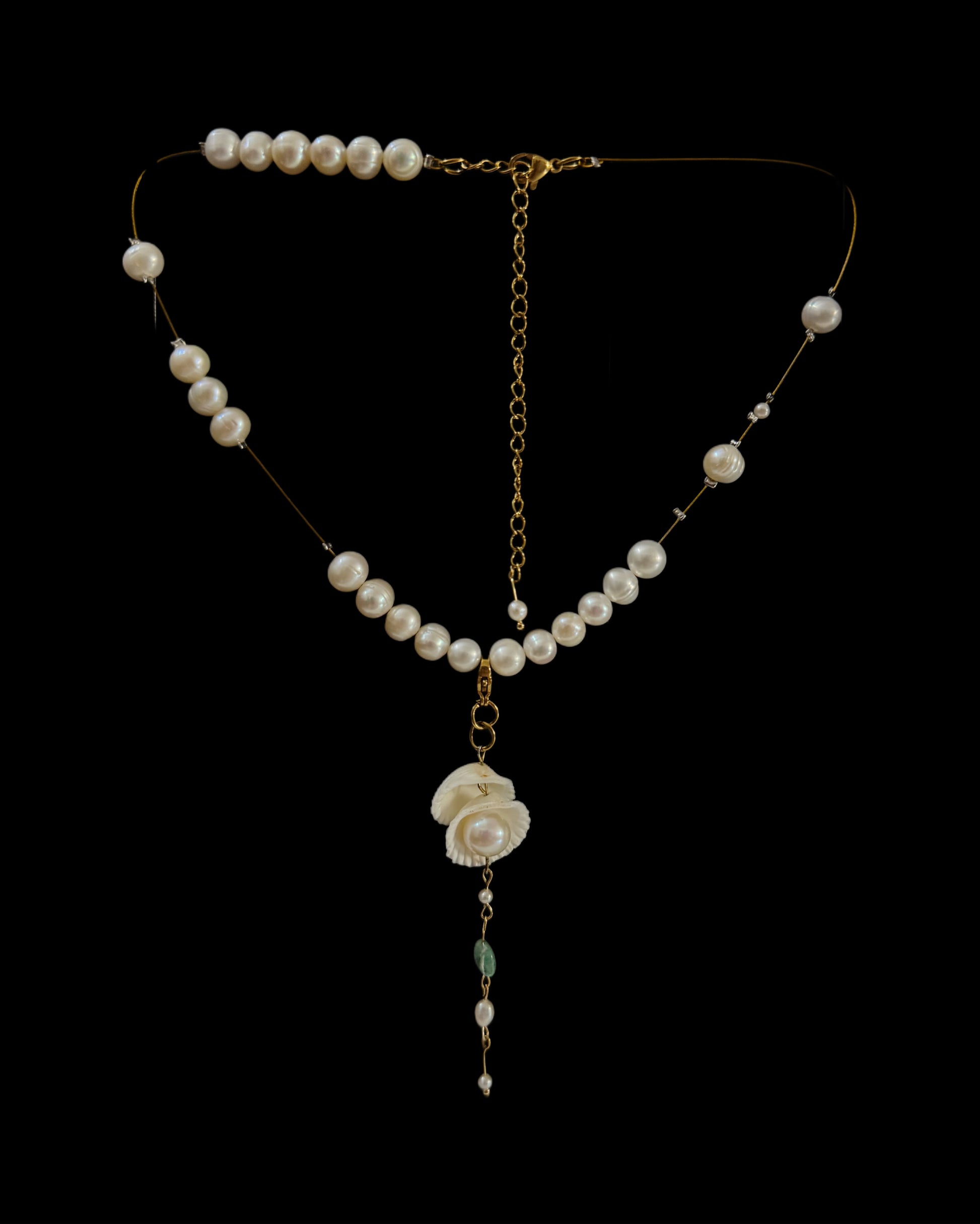 Flower stalk drop pearl choker { freshwater cultured pearl}