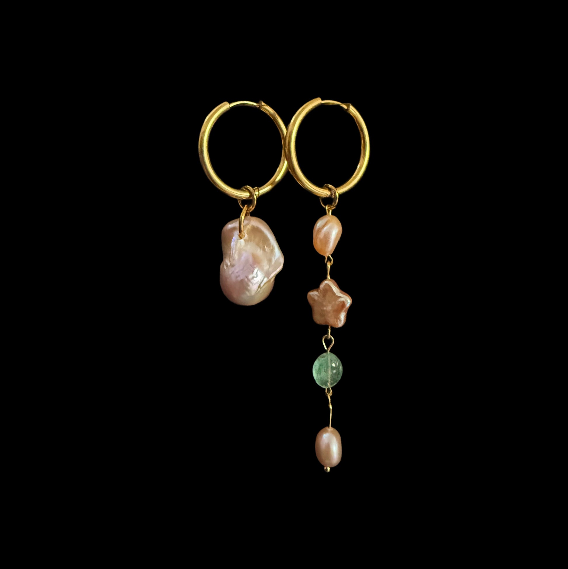 material: gold plated stainless steel, fresh water pearl, green quartz beads