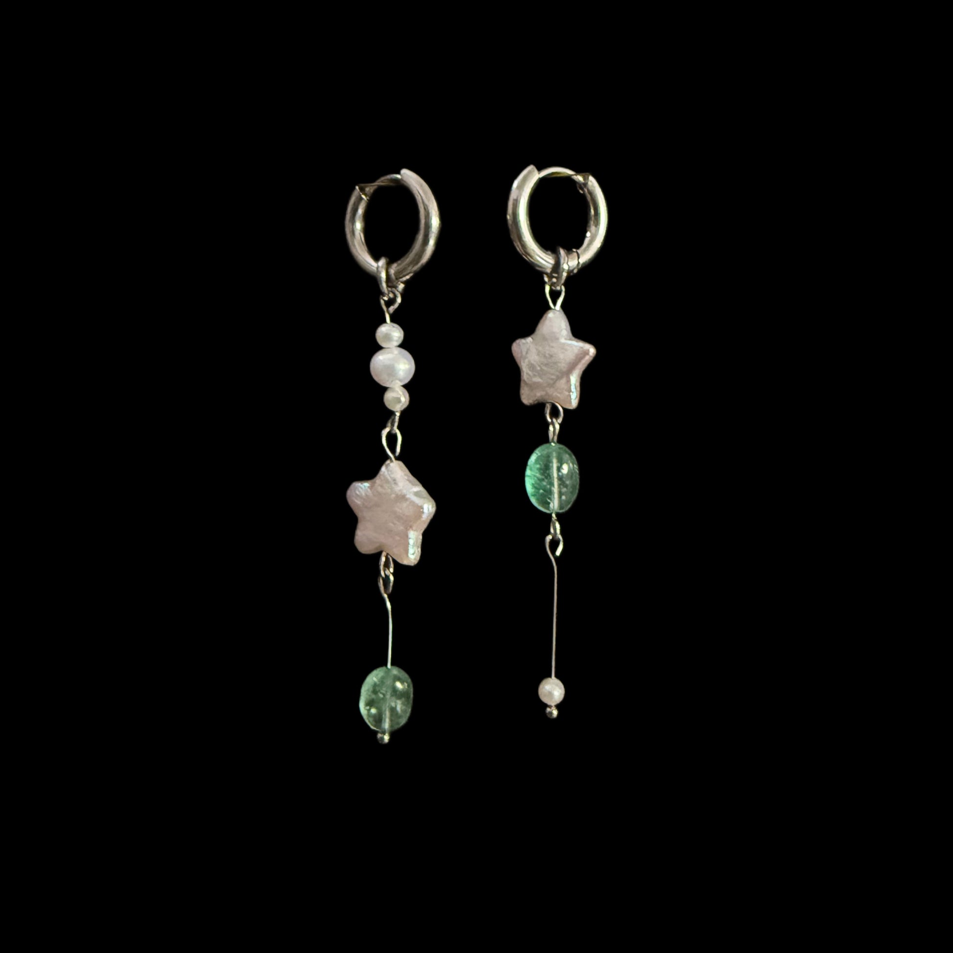 material: stainless steel, fresh water pearl, green quartz beads