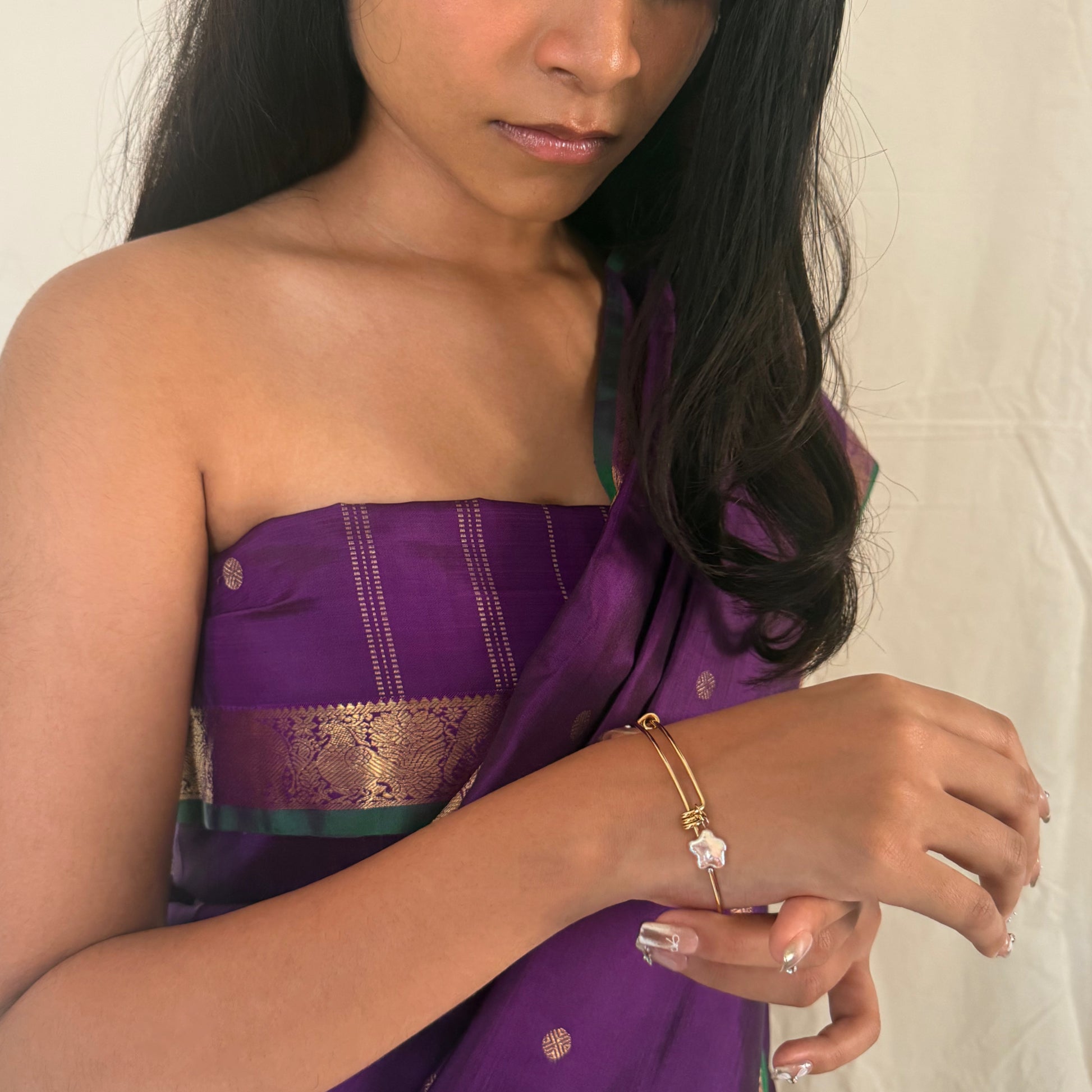 Gold bangle with purple flower