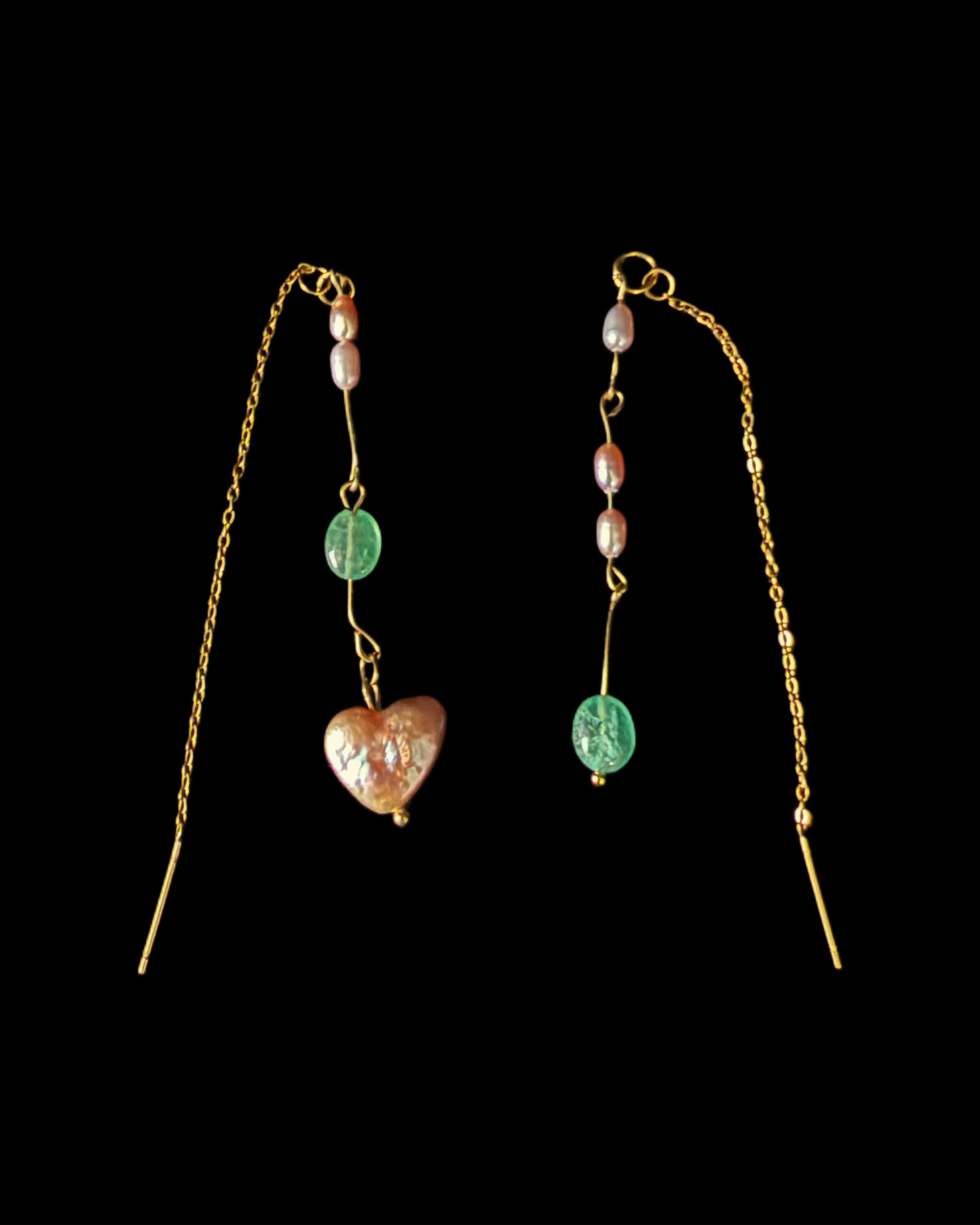 material: gold plated stainless steel, fresh water pearl, green quartz beads