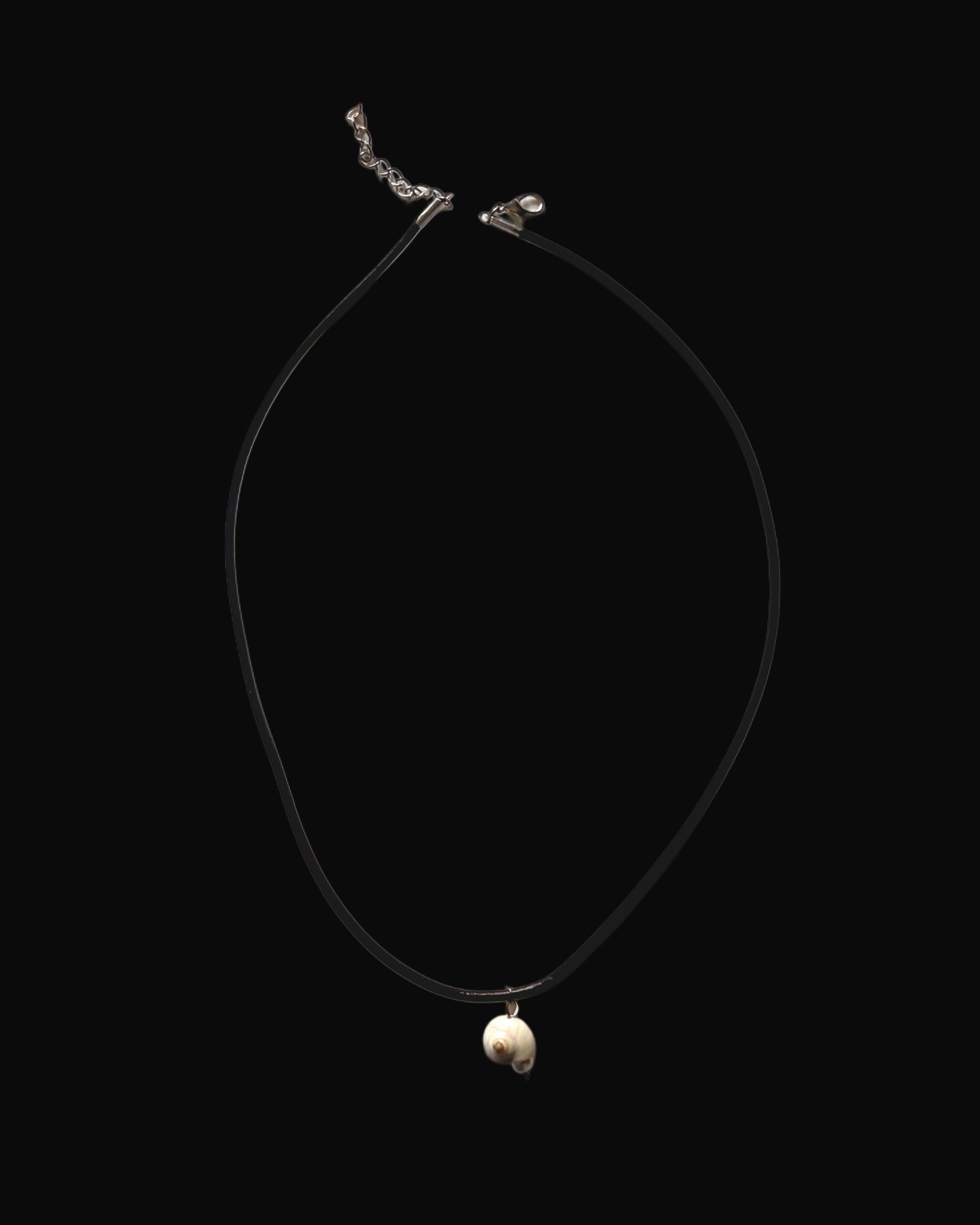 material: gold plated stainless steel, fresh water pearl, green quartz beads, leather chain
